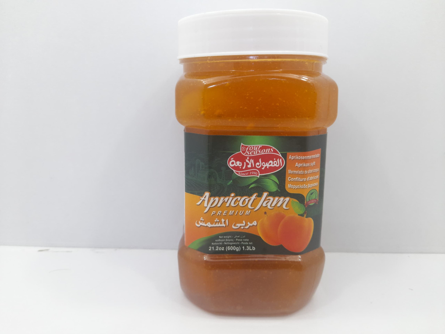 Apricot jam , 12 plastic jars in each box.